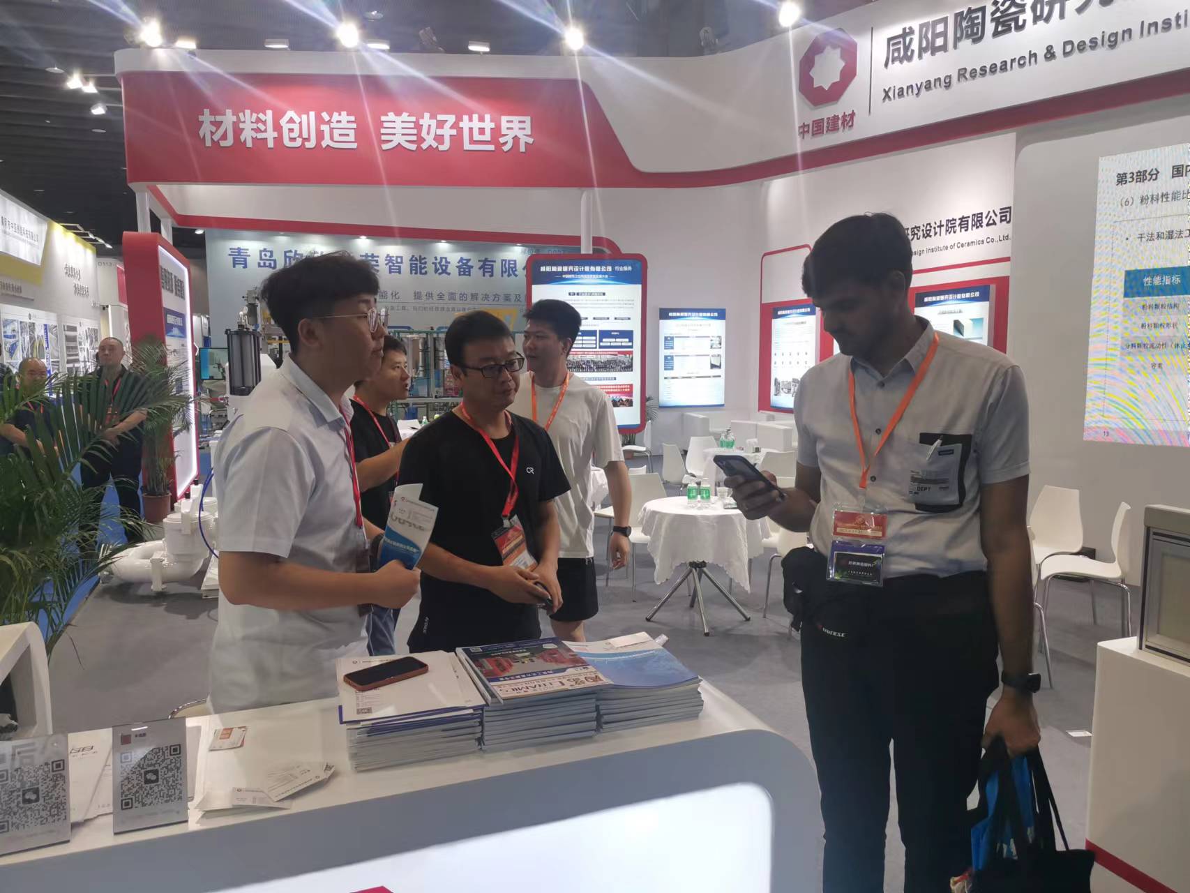 本次展會(huì)集中展示了咸陽陶瓷院的科技創(chuàng)新技術(shù)及成果,包括:先進(jìn)陶瓷材料、環(huán)保催化劑及工程設(shè)備、干法制粉、YB-300出口型柱塞泵、固廢熱解催化評(píng)價(jià)平臺(tái)、靜摩擦系數(shù)測(cè)定儀以及陶瓷磚恢復(fù)系數(shù)測(cè)定儀等。我院展臺(tái)設(shè)計(jì)新穎、顏色燈光鮮亮、格調(diào)醒目,利用多種尺寸的大型噴繪圖片、大型LED屏視頻展示、多臺(tái)裝備實(shí)物展品、資料圖書等形式進(jìn)行宣傳推廣,參展期間,我院展臺(tái)人流不斷,工作人員專業(yè)熱情地接待各國客戶并進(jìn)行耐心講解,現(xiàn)場(chǎng)交流氣氛熱烈,受到國內(nèi)外客戶的高度關(guān)注,收獲滿滿。